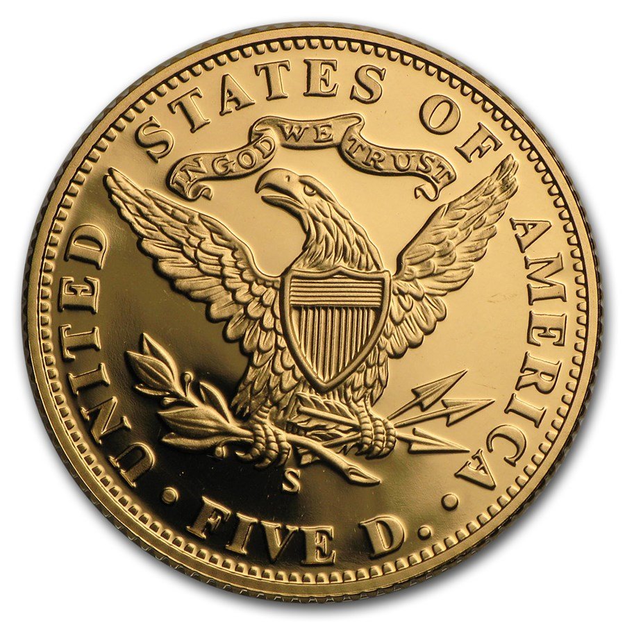 Reverse: Features an Eagle design that was first used on the reverse of the $5.00 Liberty Head Half Eagle (with motto).
